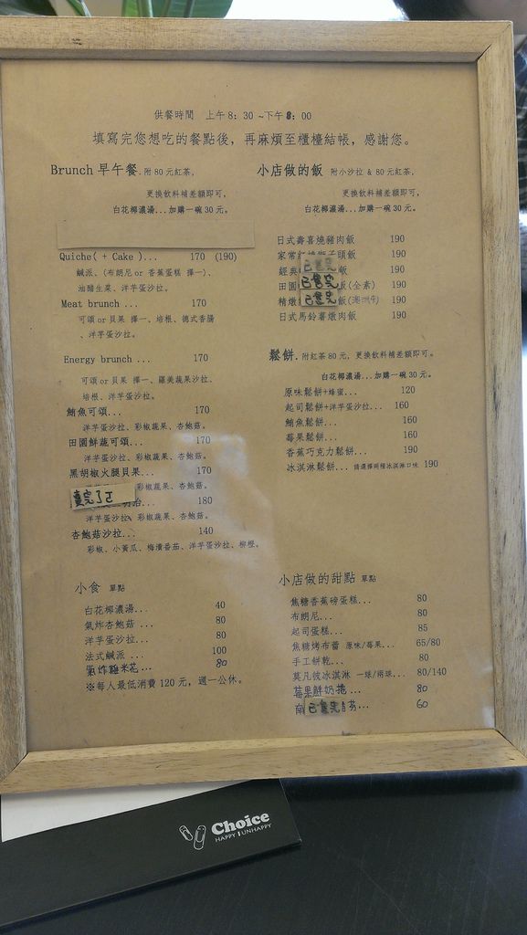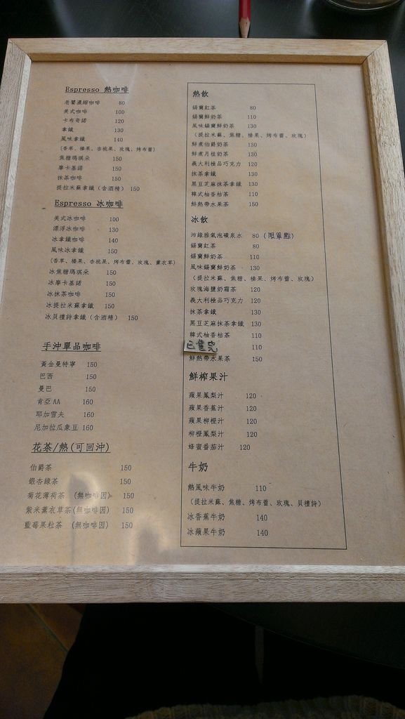 菜單很精緻是相框形狀的很特別
