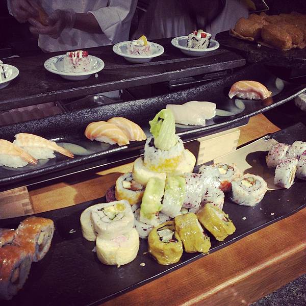 生魚片手捲炸蝦牛排跟一堆甜點~~~~~~~~~~~