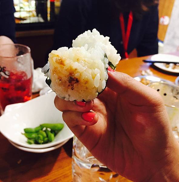 可以拿 閃亮白米海苔飯糰 $50(兩顆) 來沾雞汁吃