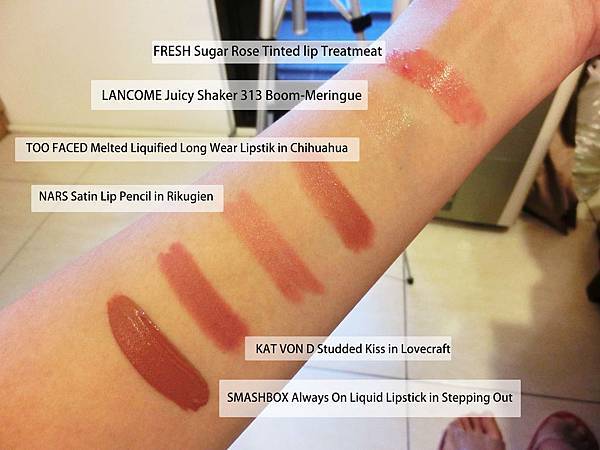 不同的光源、不同的唇色看起來都讓顏色不同,以下照片我有盡量拍希望可以幫助大家