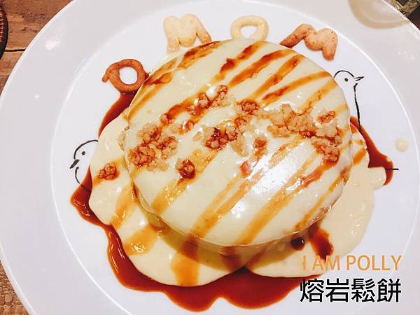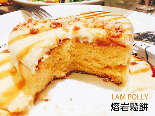 熔岩鬆餅是很厚的鬆餅淋上北海道奶油加上夏威夷果